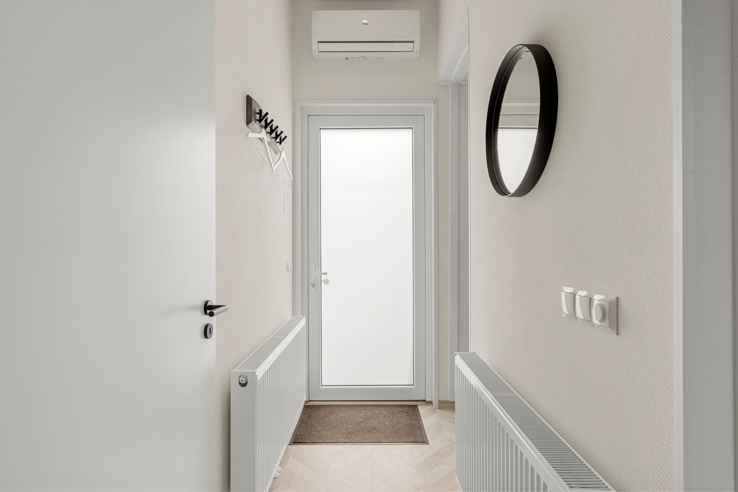 Bij binnenkomst betreedt u de centrale en nette hal, waar direct opvalt hoe overzichtelijk en doordacht de woning is ingedeeld. Vanuit hier heeft u toegang tot de badkamer, een praktische opbergkast en de eerste slaapkamer. Ook de woonkamer is vanuit de hal rechtstreeks te bereiken.