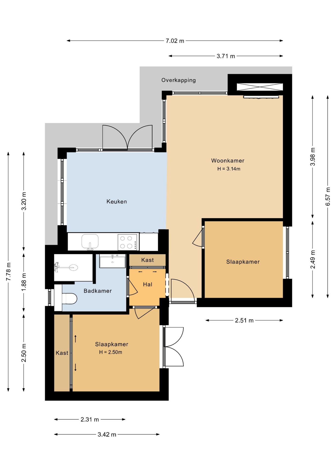 Bij binnenkomst betreedt u de centrale en nette hal, waar direct opvalt hoe overzichtelijk en doordacht de woning is ingedeeld. Vanuit hier heeft u toegang tot de badkamer, een praktische opbergkast en de eerste slaapkamer. Ook de woonkamer is vanuit de hal rechtstreeks te bereiken.