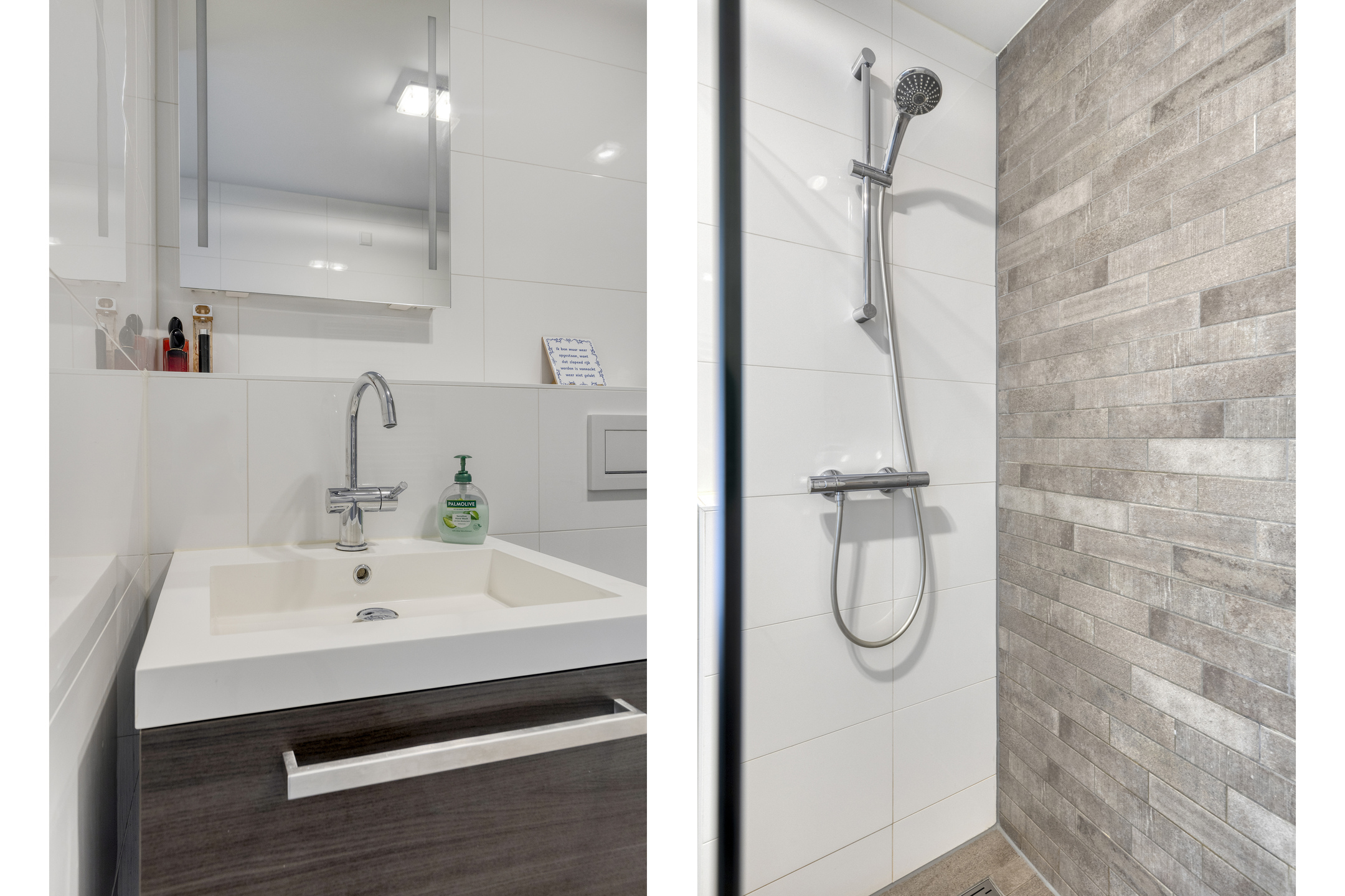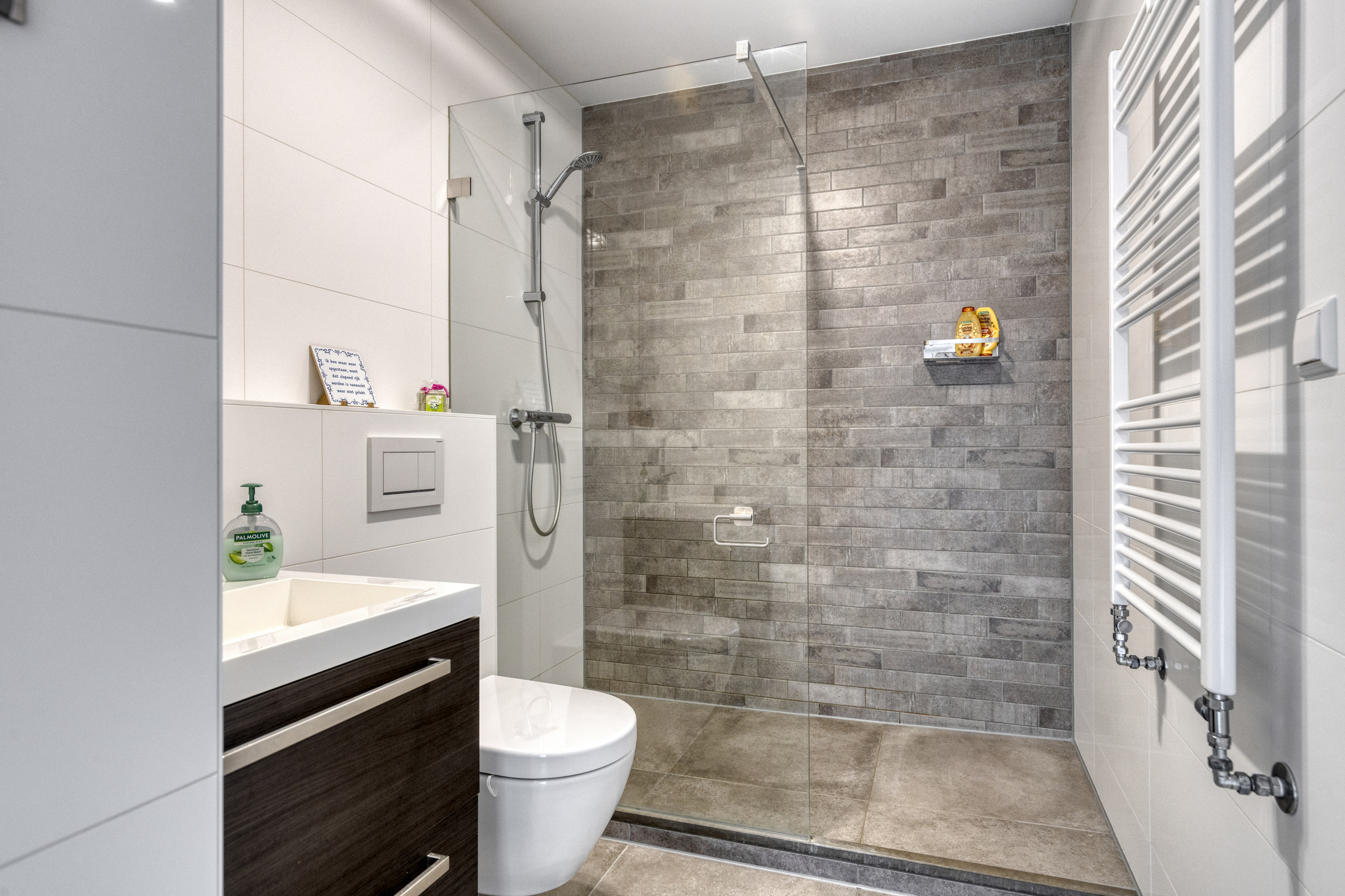 - Nette badkamer met een inloopdouche, wastafelmeubel + een tweede toilet